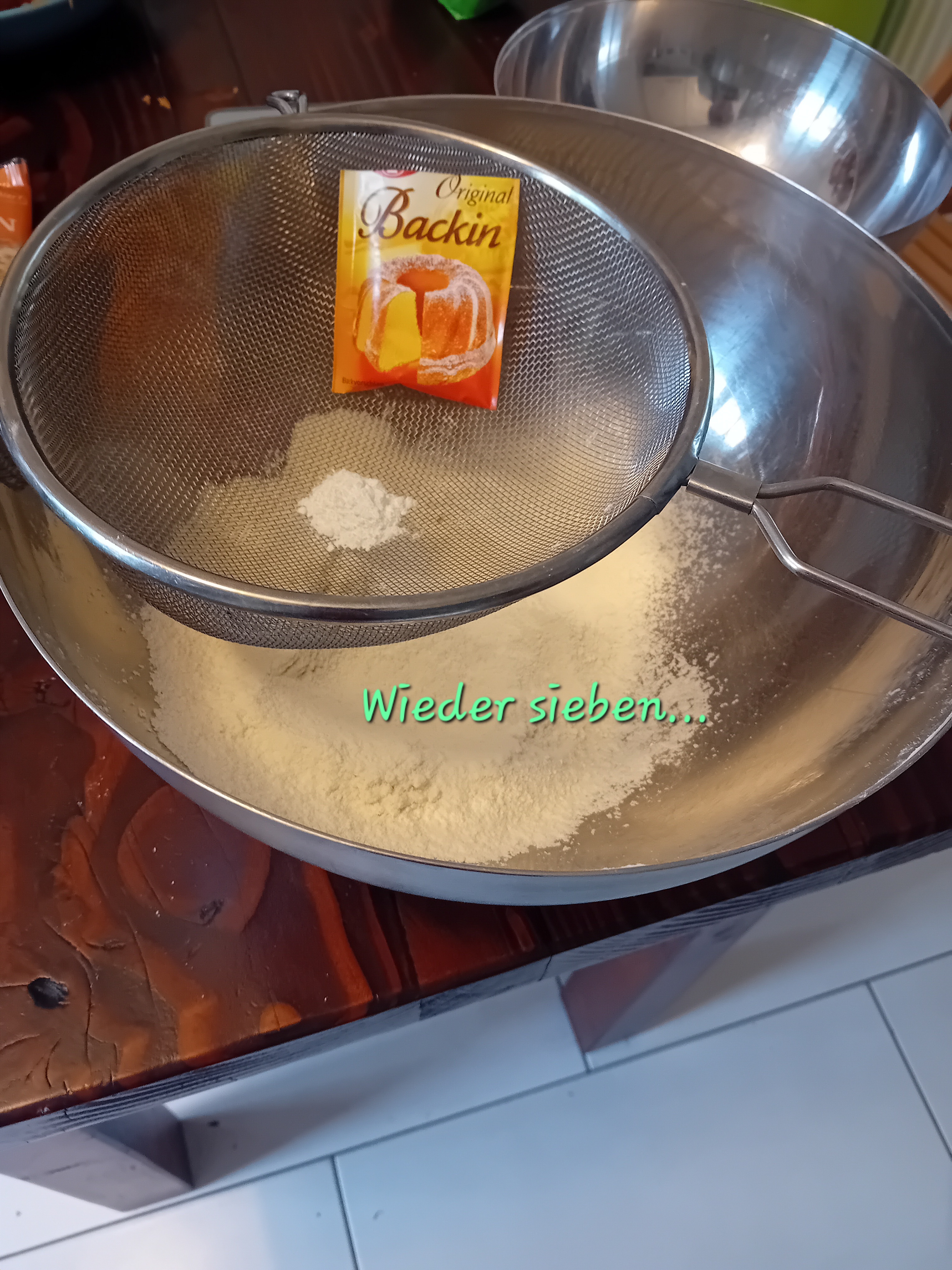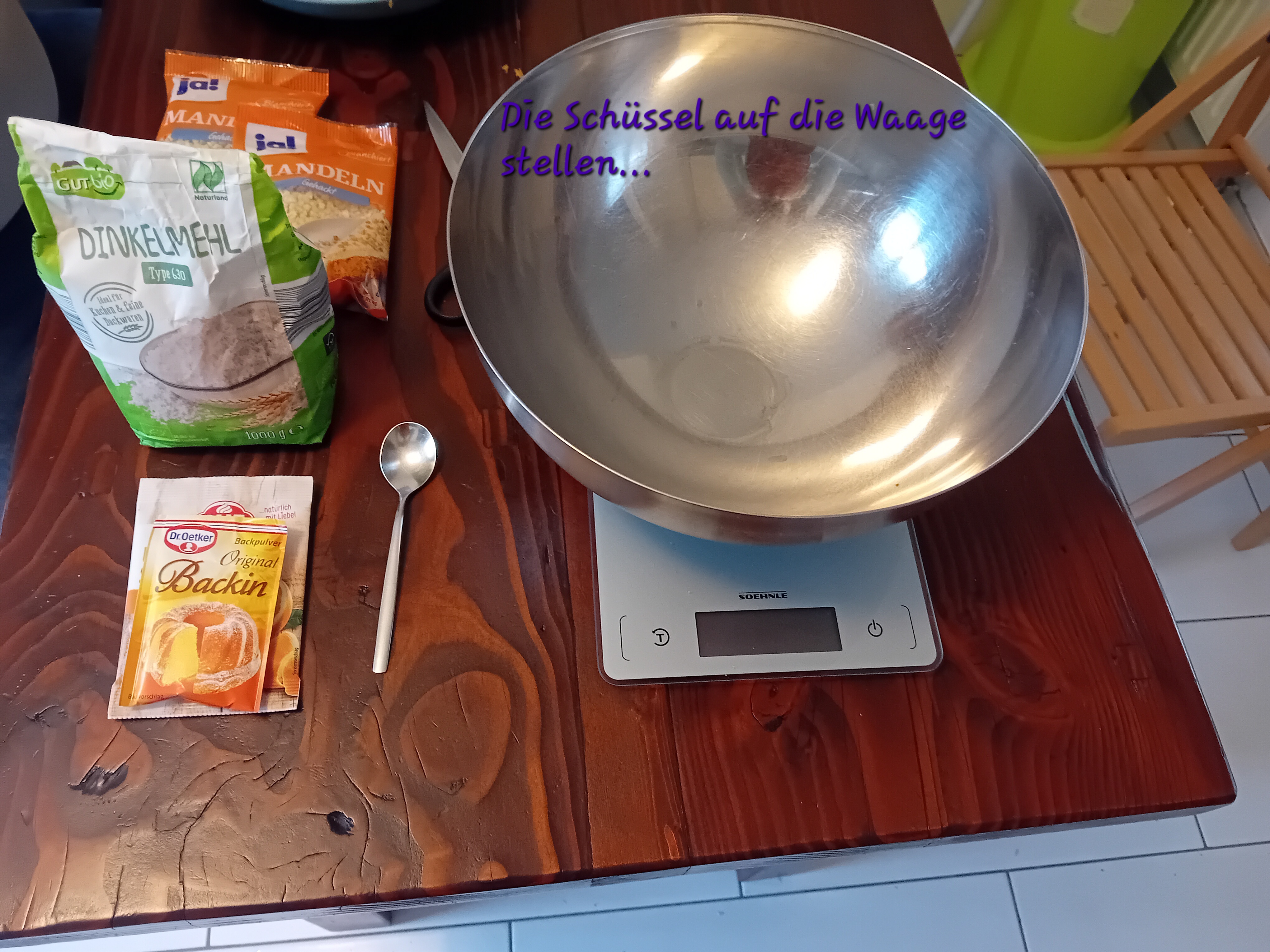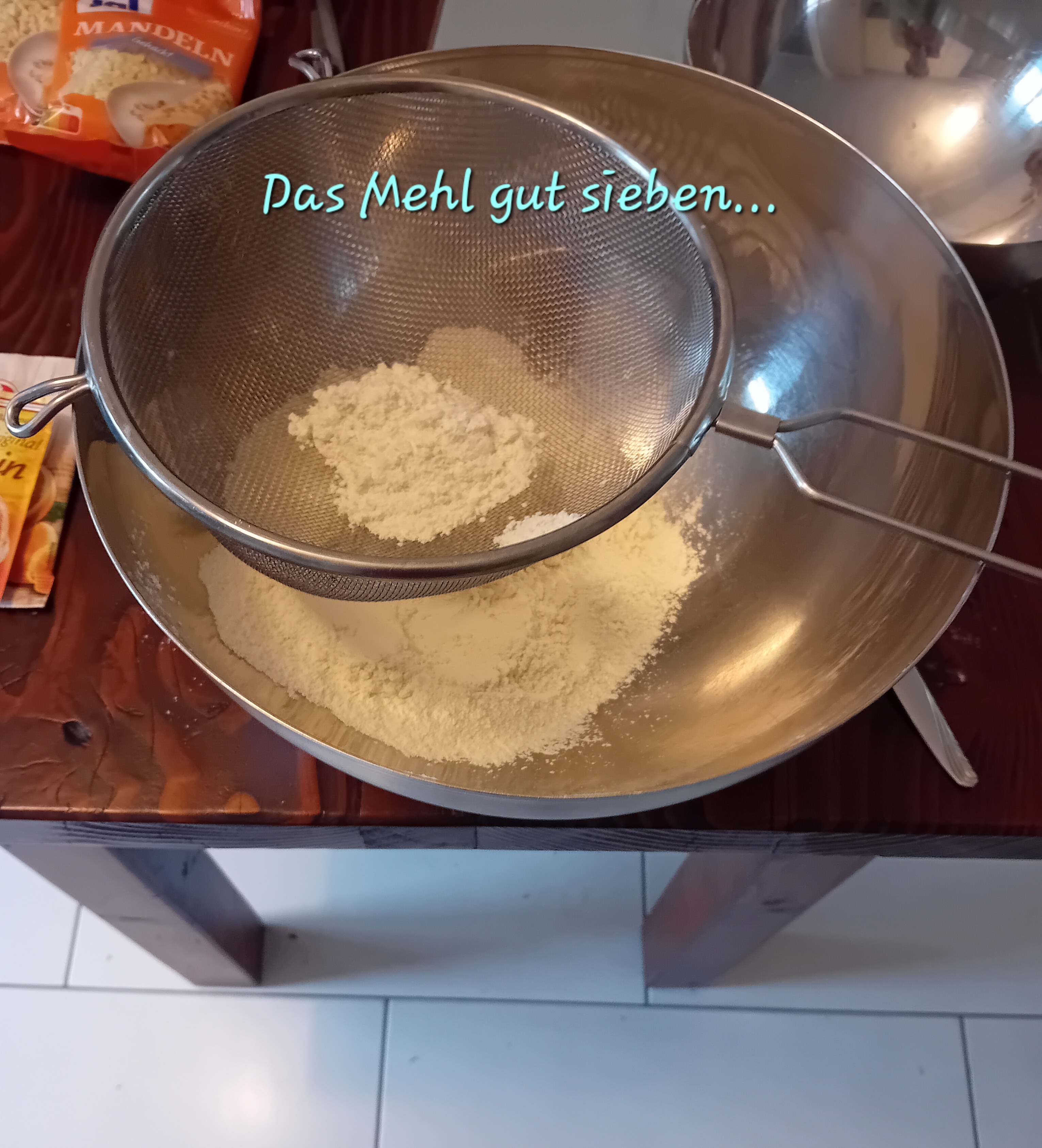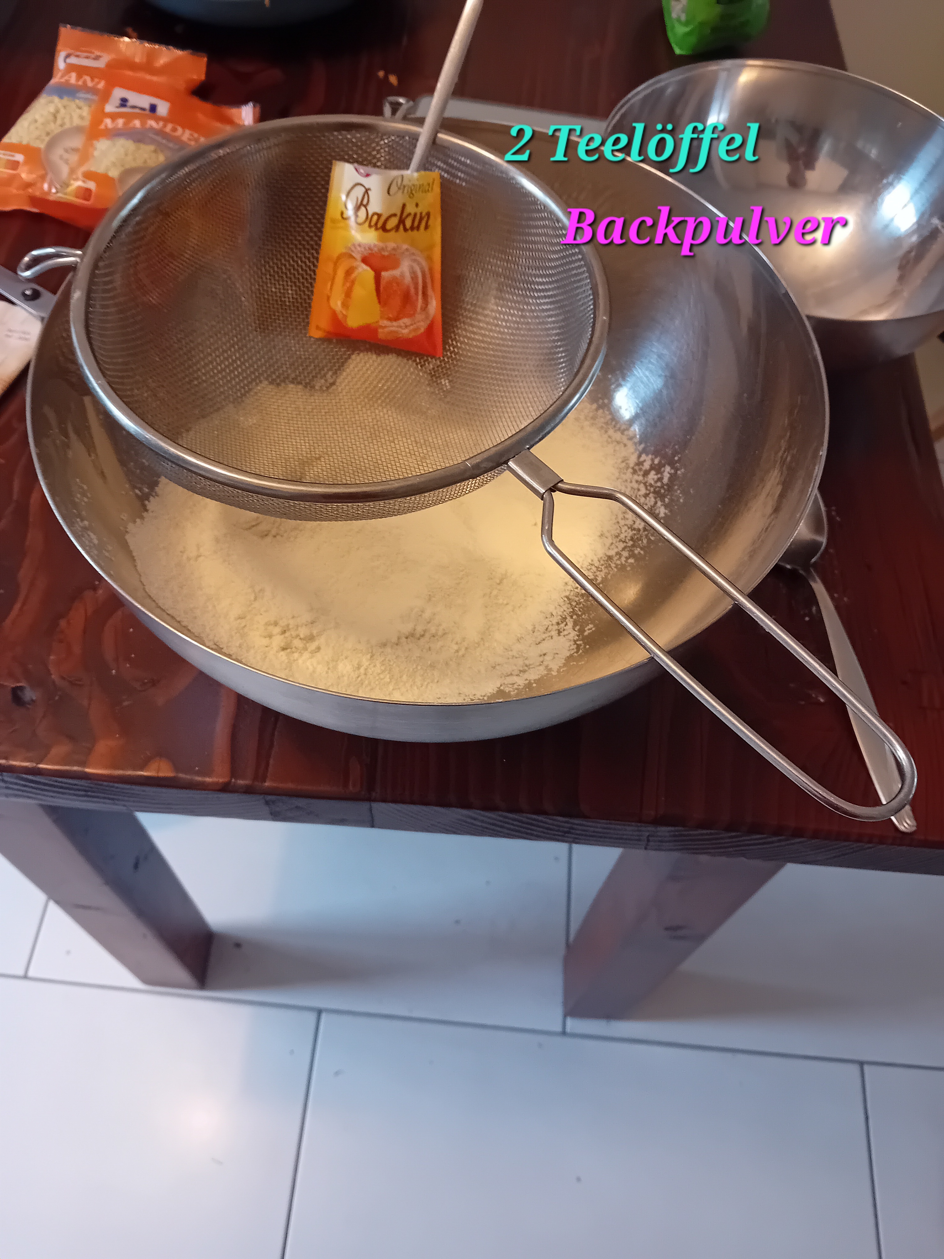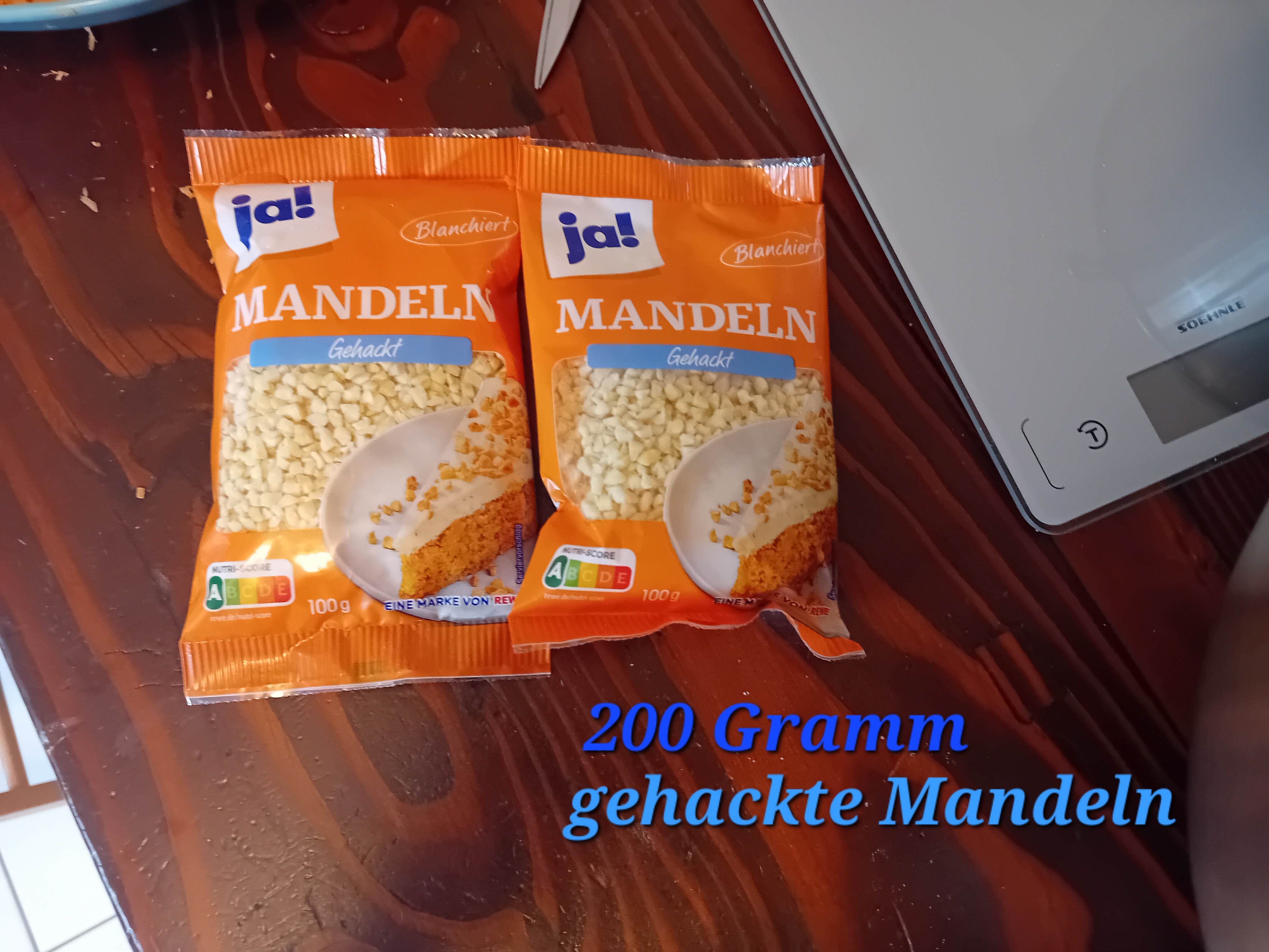 PPS: Wer mag, kann auch gemahlene Mandeln nehmen, dann muss man weniger kauen und der Kuchen geht besser auf.