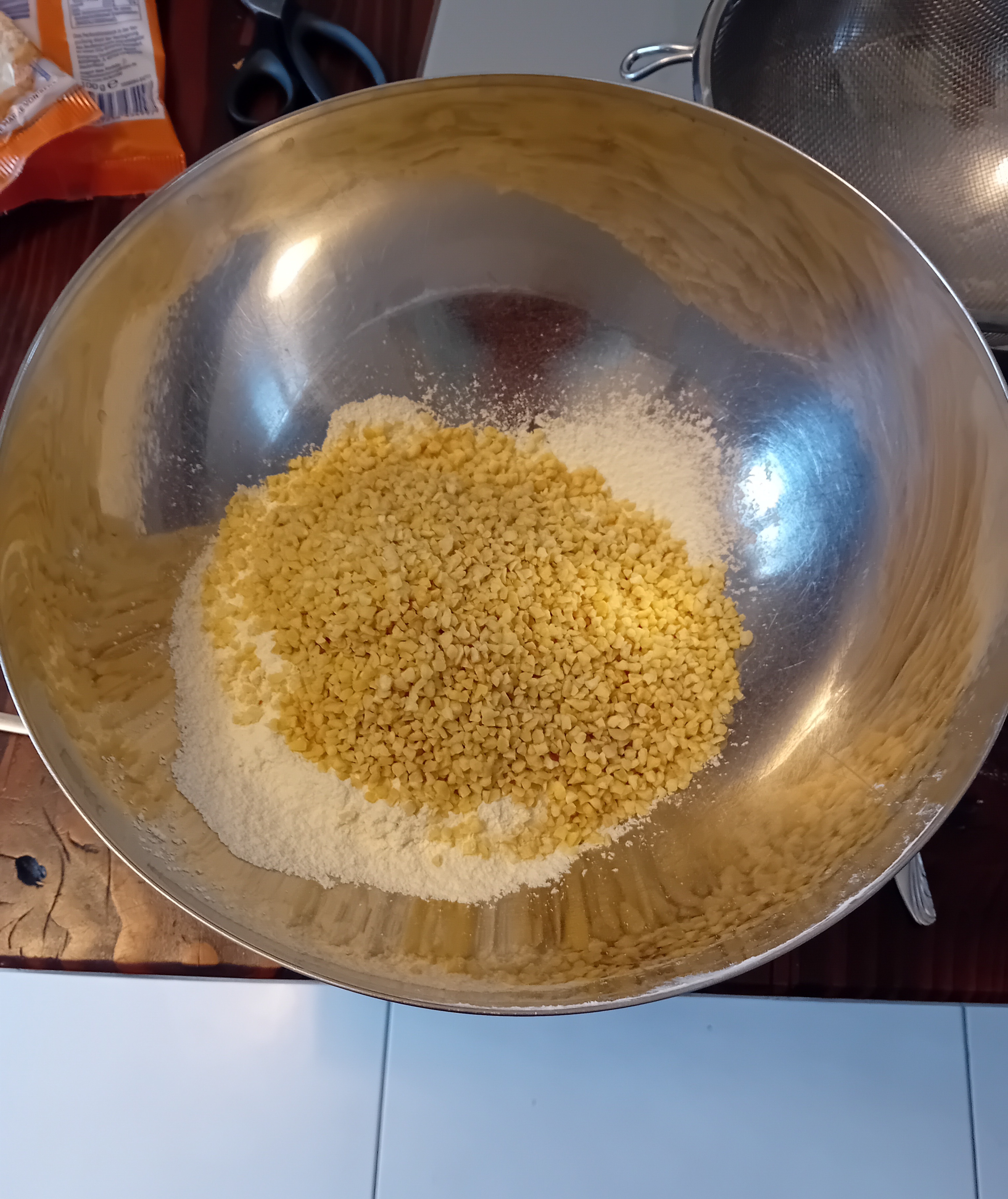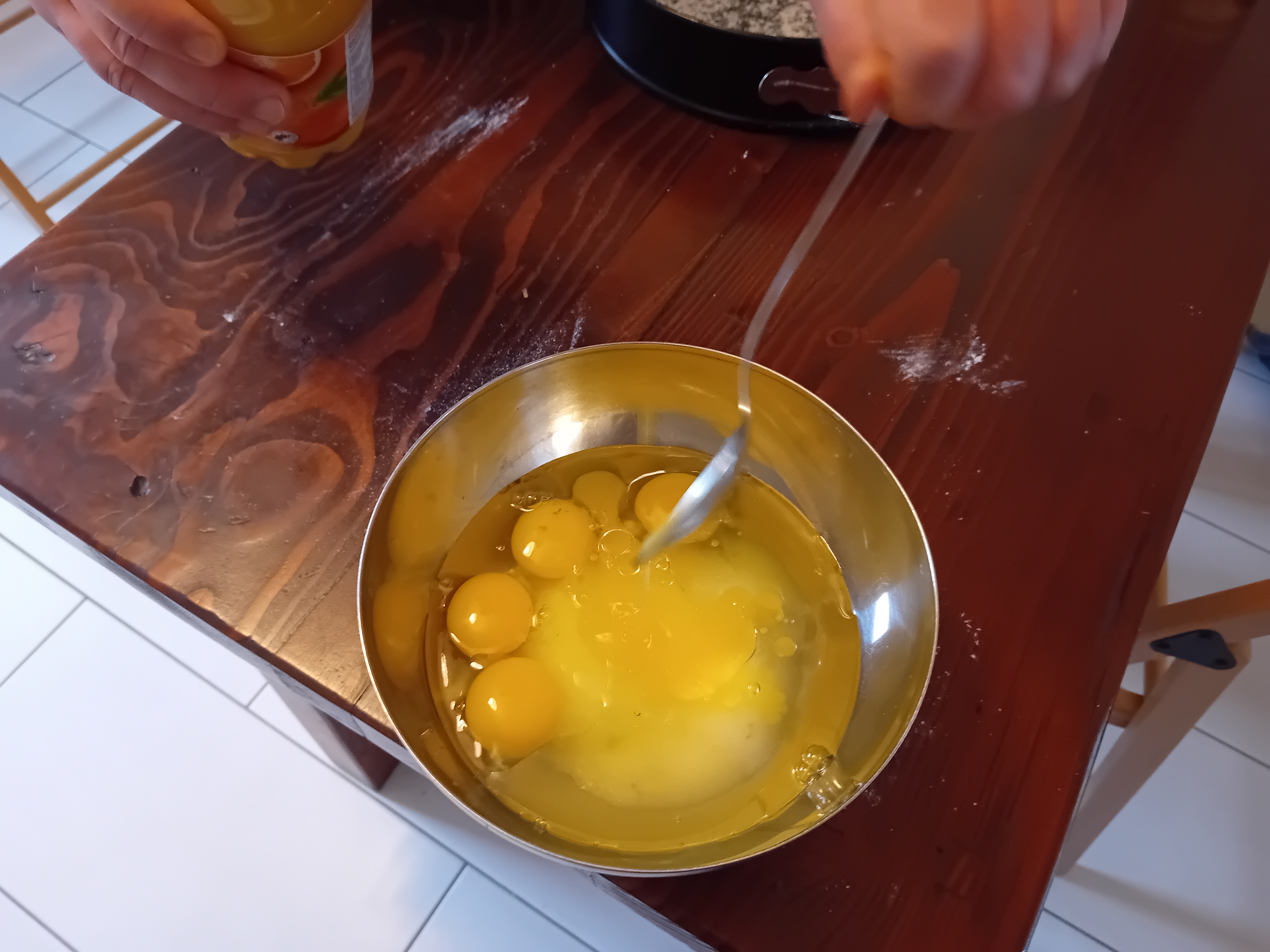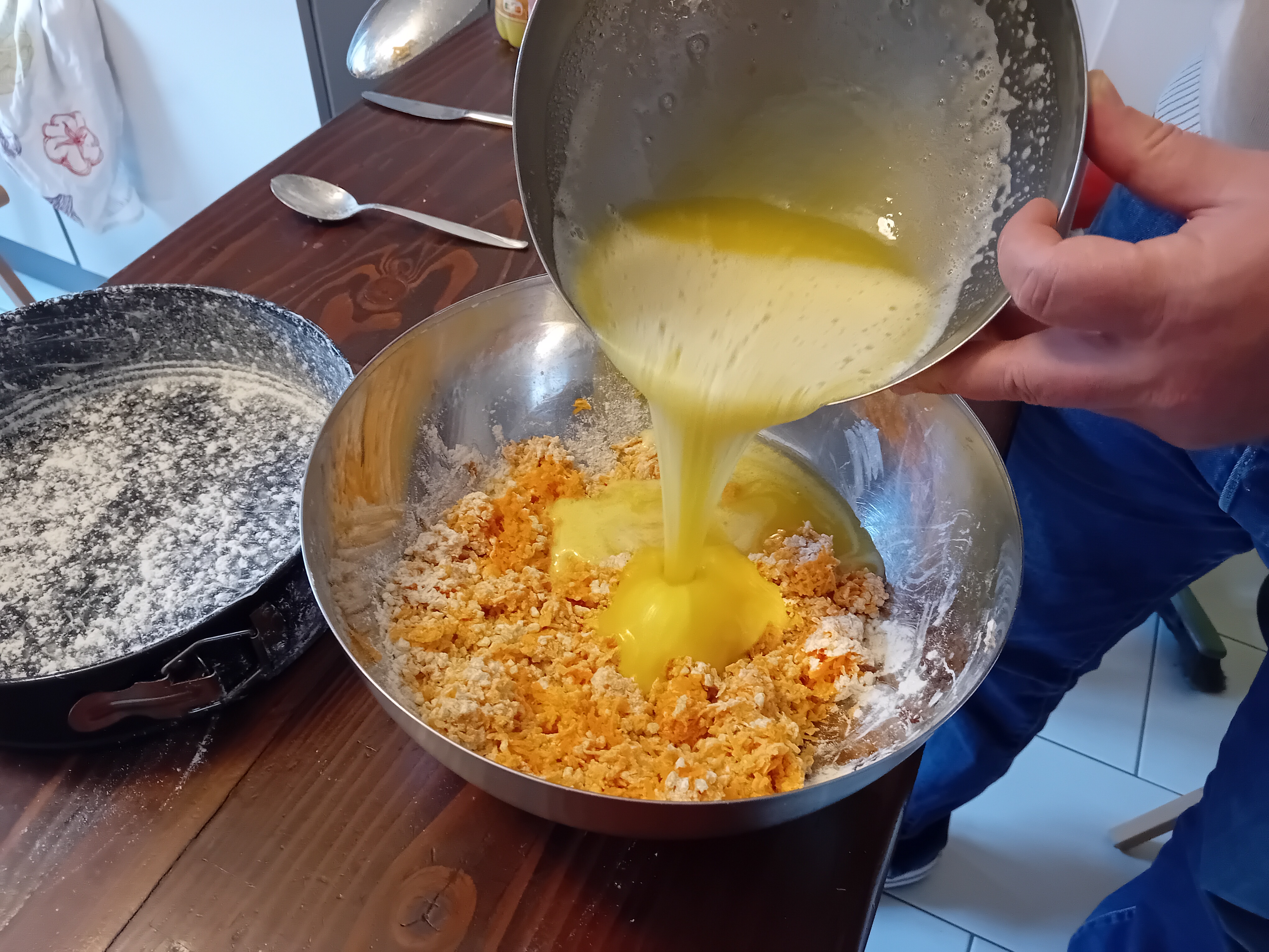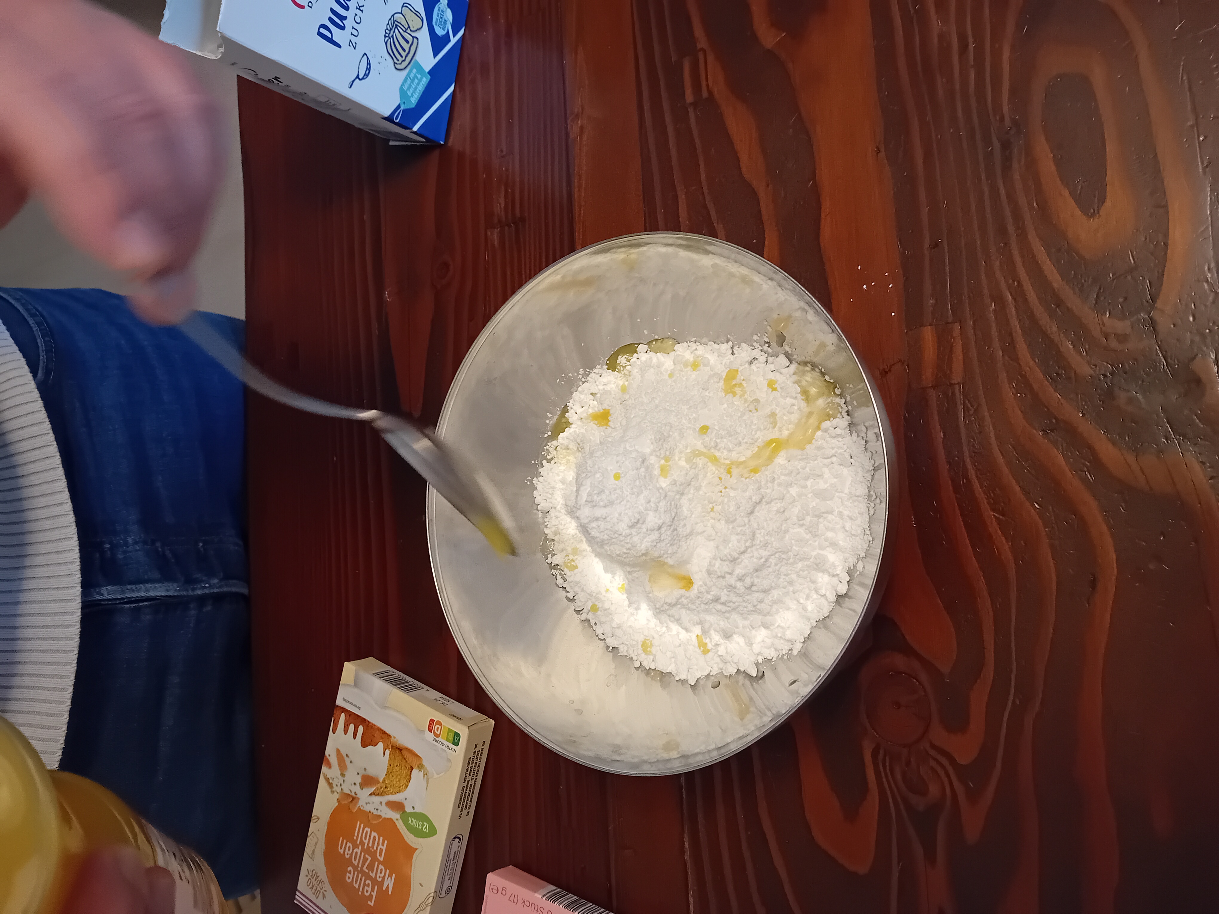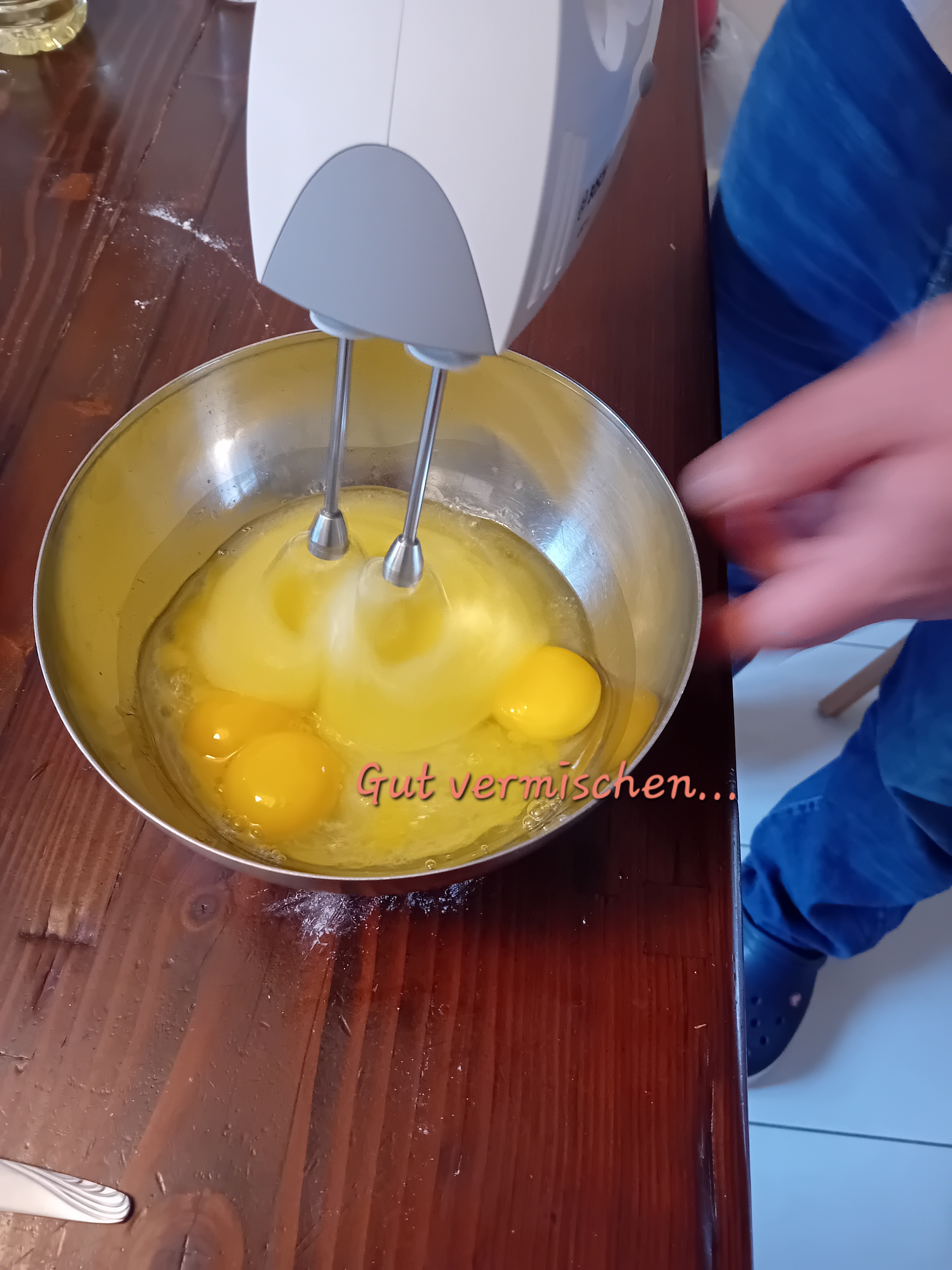 PPS: Wer mag, kann auch gemahlene Mandeln nehmen, dann muss man weniger kauen und der Kuchen geht besser auf.