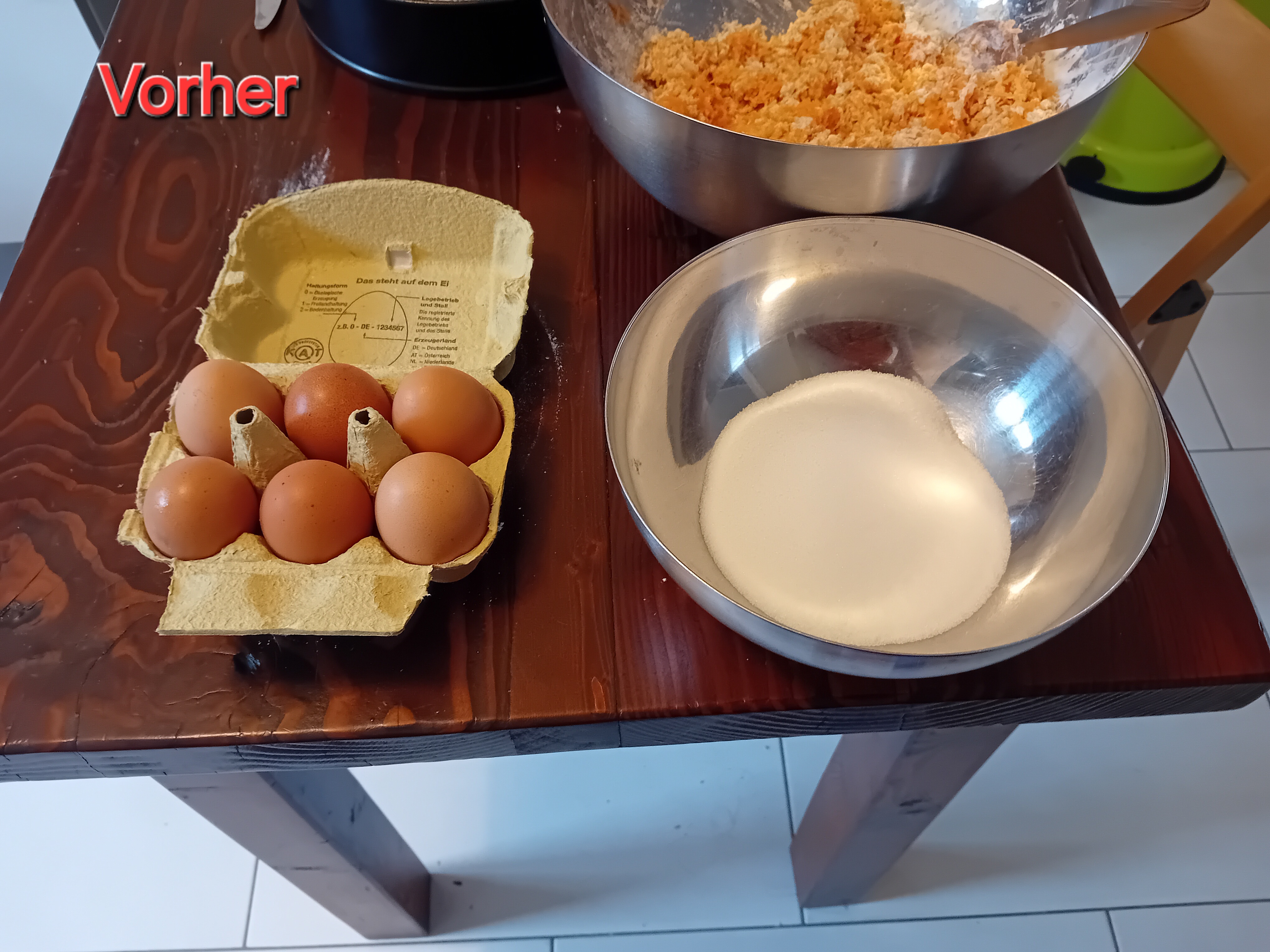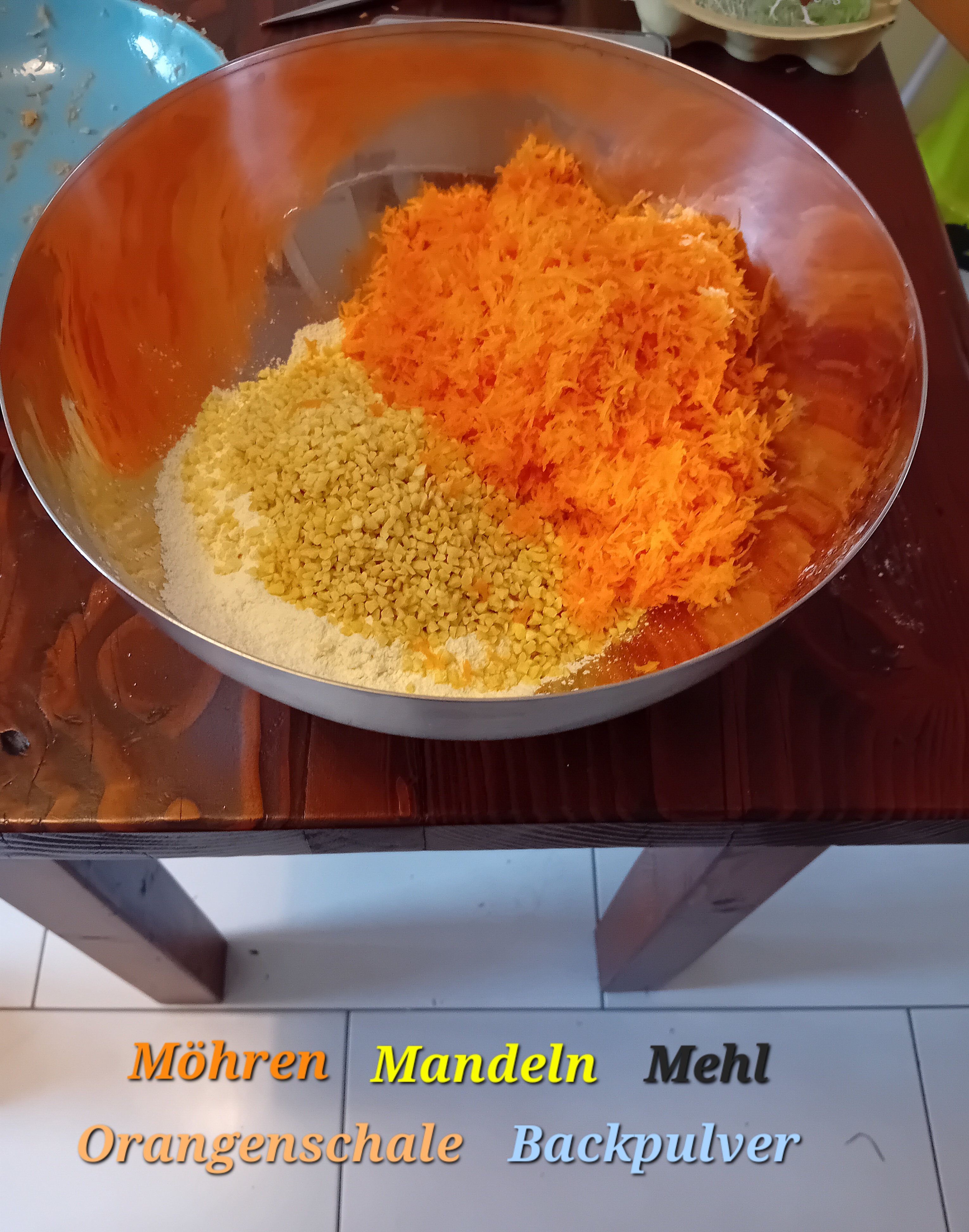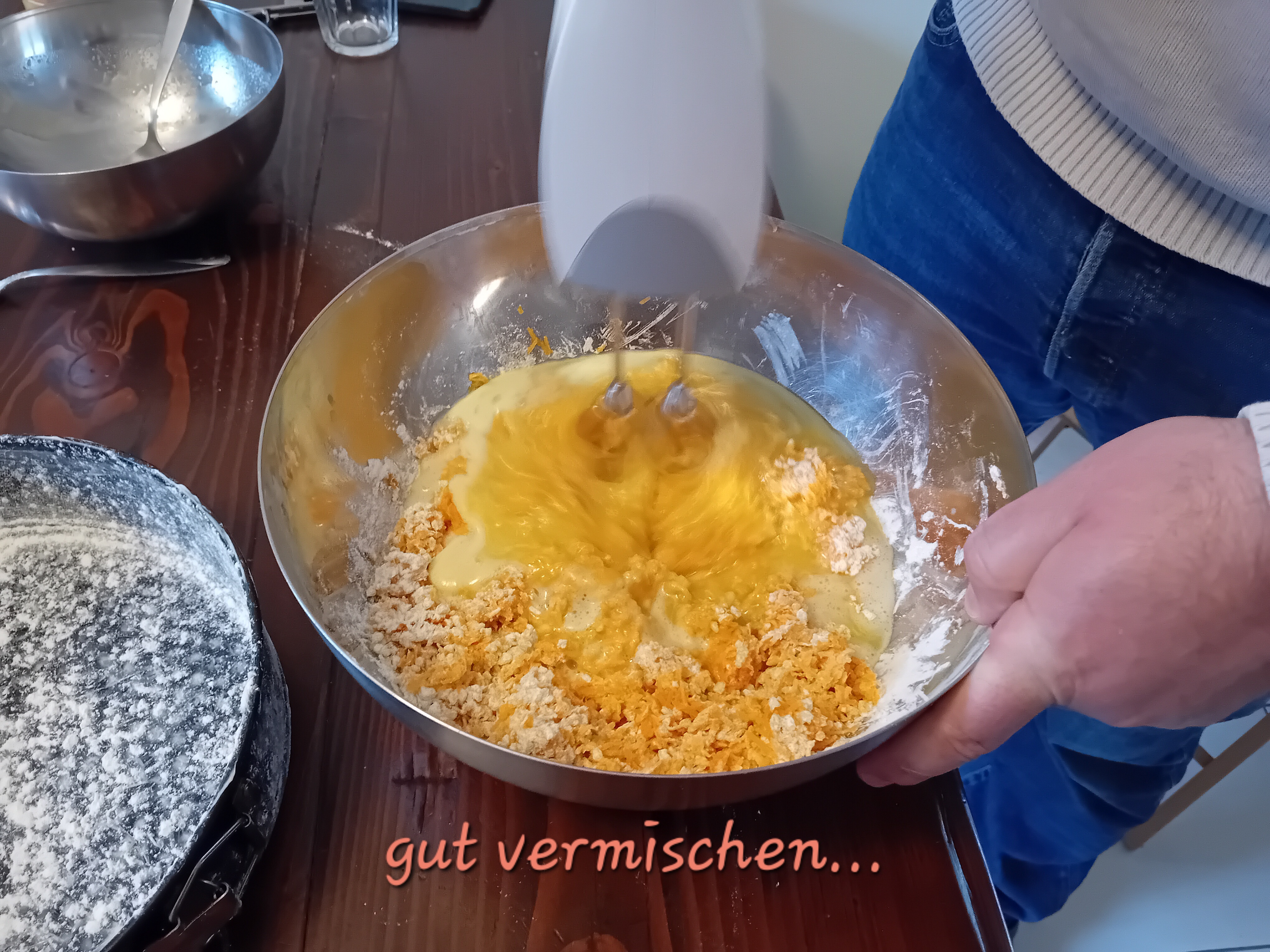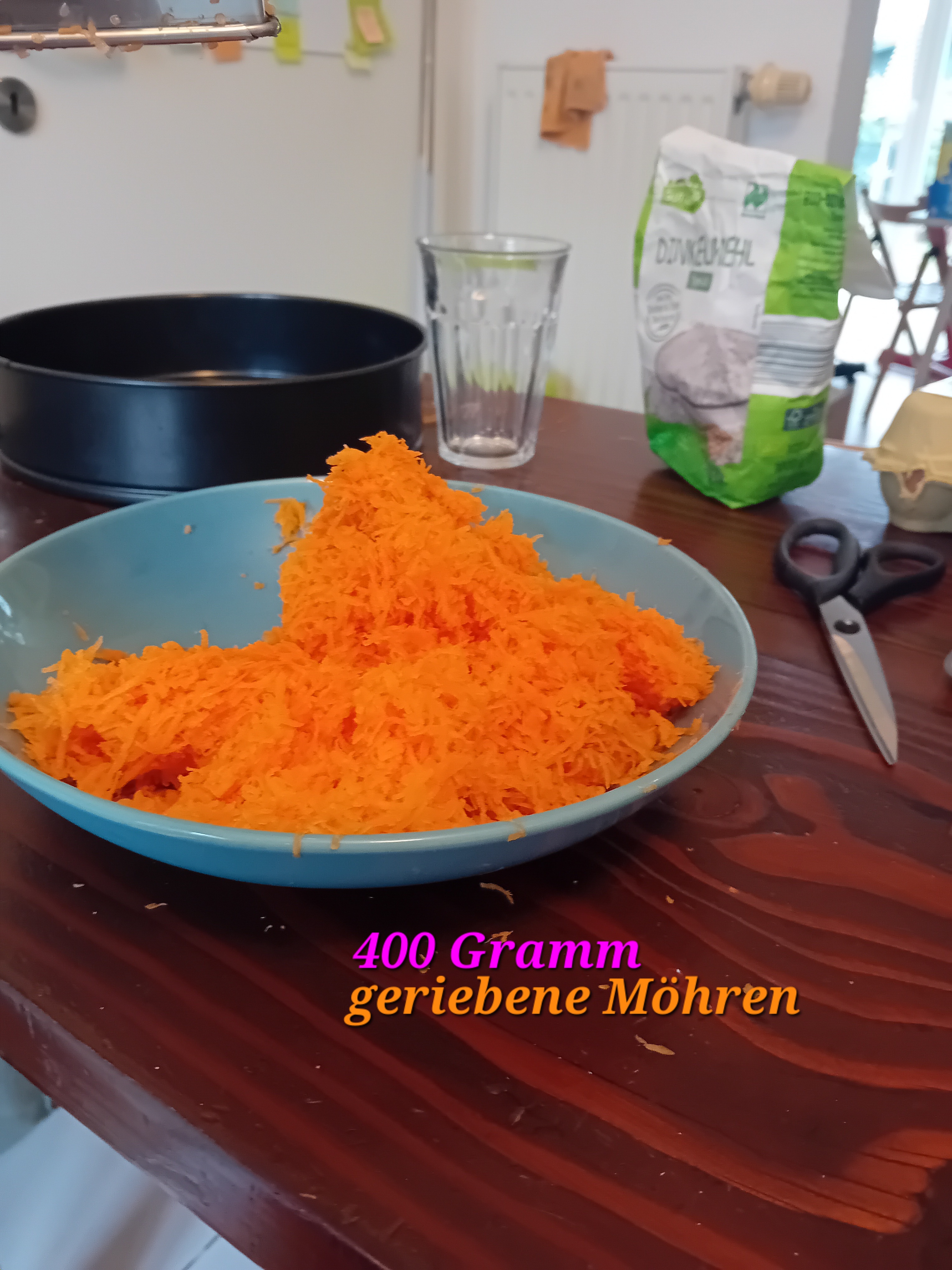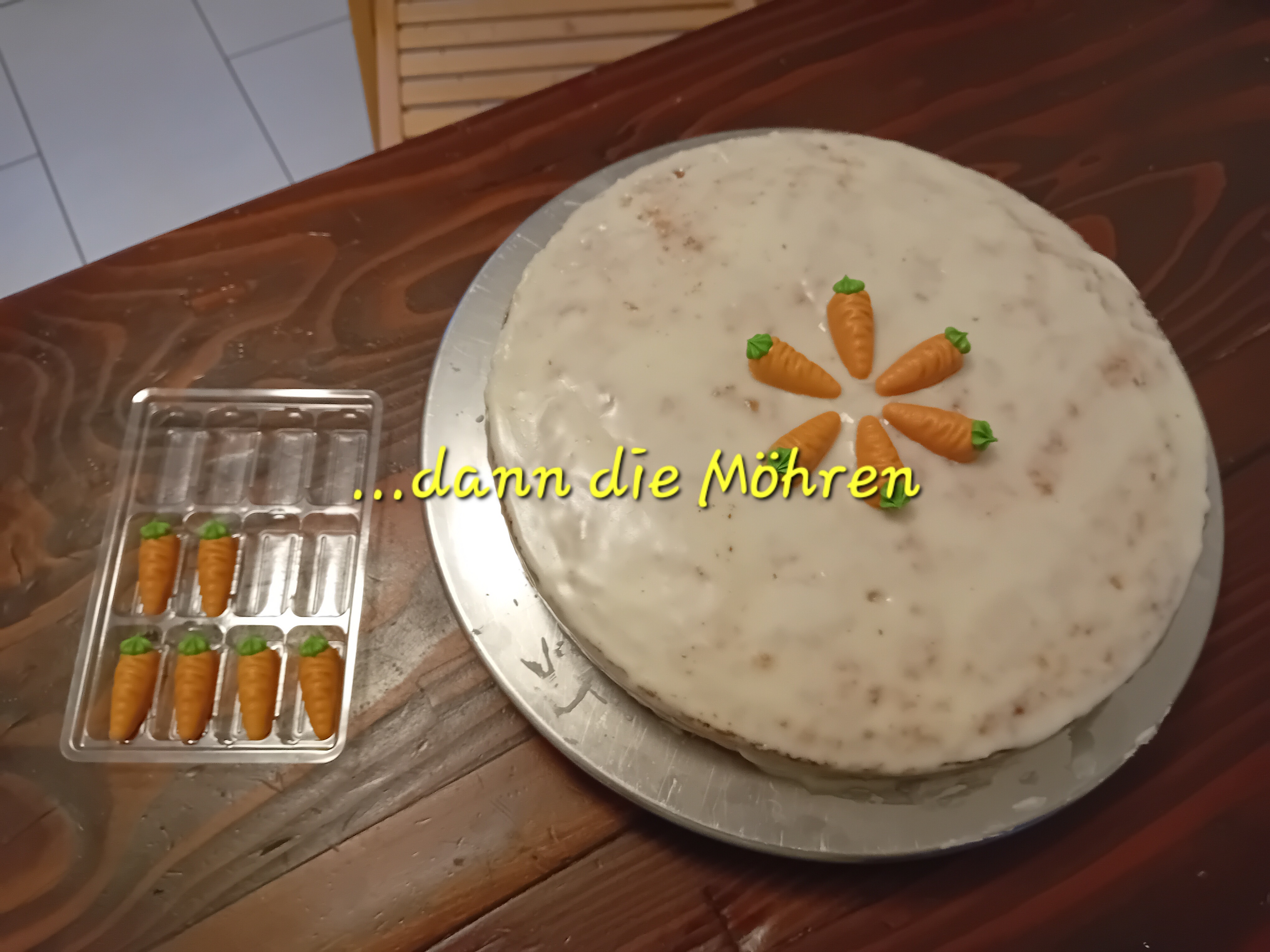 PS: Das habe ich auf den Fotos vergessen zu schreiben: Die Möhrentorte wird bei 160° Umluft gebacken.